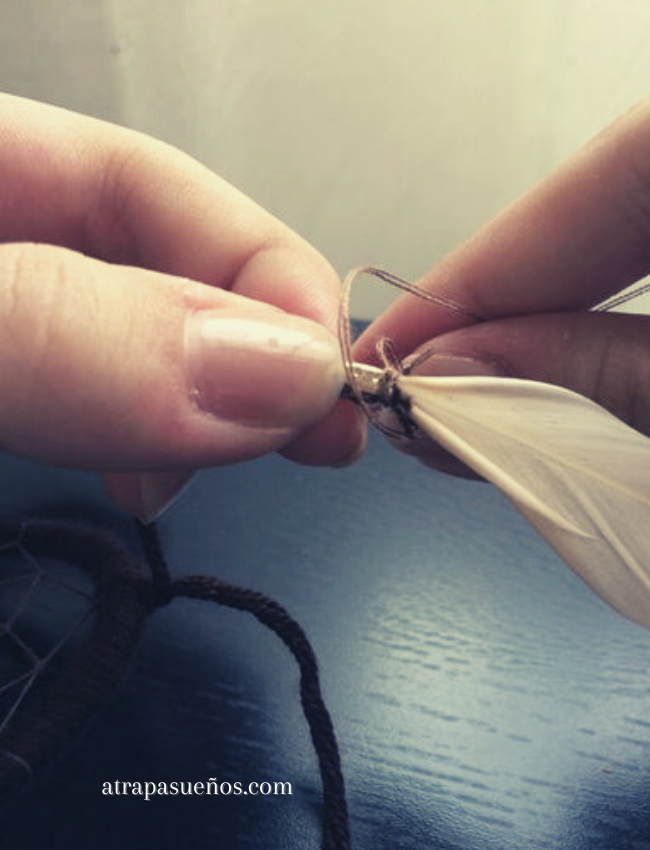 Cuarto paso: Poner las plumas para terminar de hacer el atrapasueños.