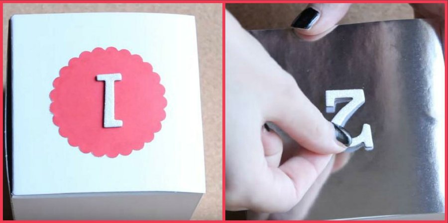 El proceso es muy sencillo. Crea combinaciones de colores y materiales para decorar las cajas. RoxyRocksTV ha usado troqueladoras para hacer formas y luego ha utilizado números adhesivos. ¡También puedes usar papel de regalo!