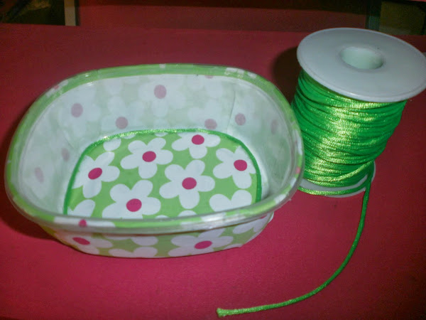 Empezé por quitar la tapa y forrar el taper con la tela y pegando con silicona. También puse un pedacito de tela dentro. Con la cola de ratón repase el borde de dentro.