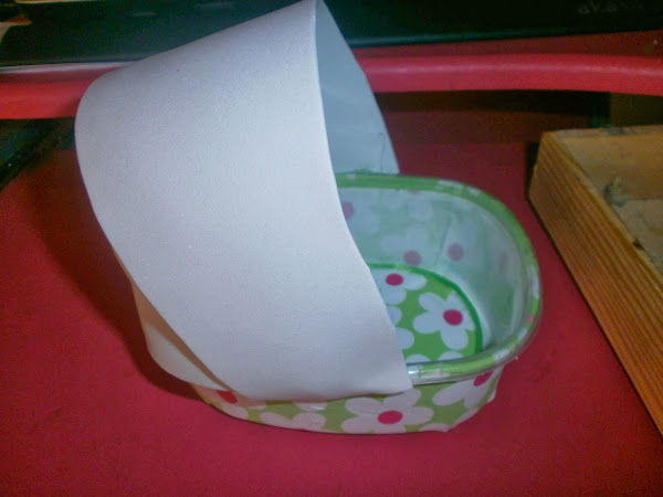 Me sobraban algunos tapers en casa de los que compras con comida ya echa. Bueno pues se me ocurrió mirando la forma que tenia, me podía servir para hacer un cochecito de bebe, y decidí probar. Os doy los principales materiales, por que los los otros fue sobre la marcha probando de lo que tenia por casa.