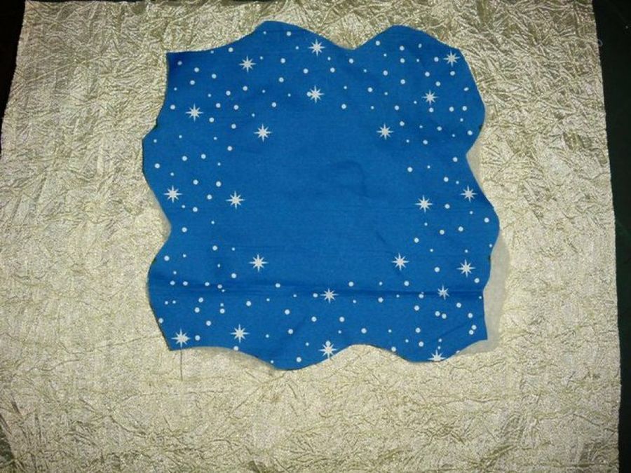 "Procedemos a colocar la guata debajo del cielo y fijamos con alfileres".