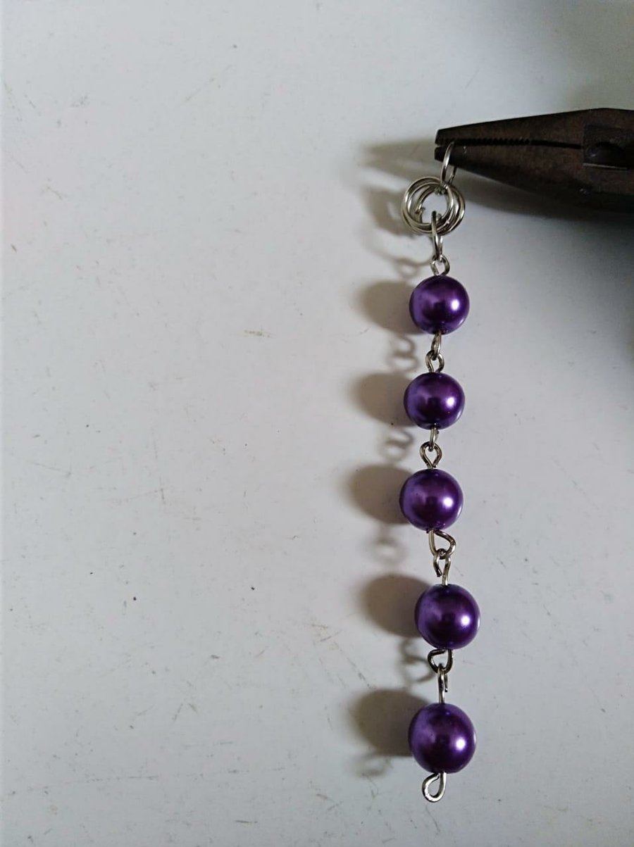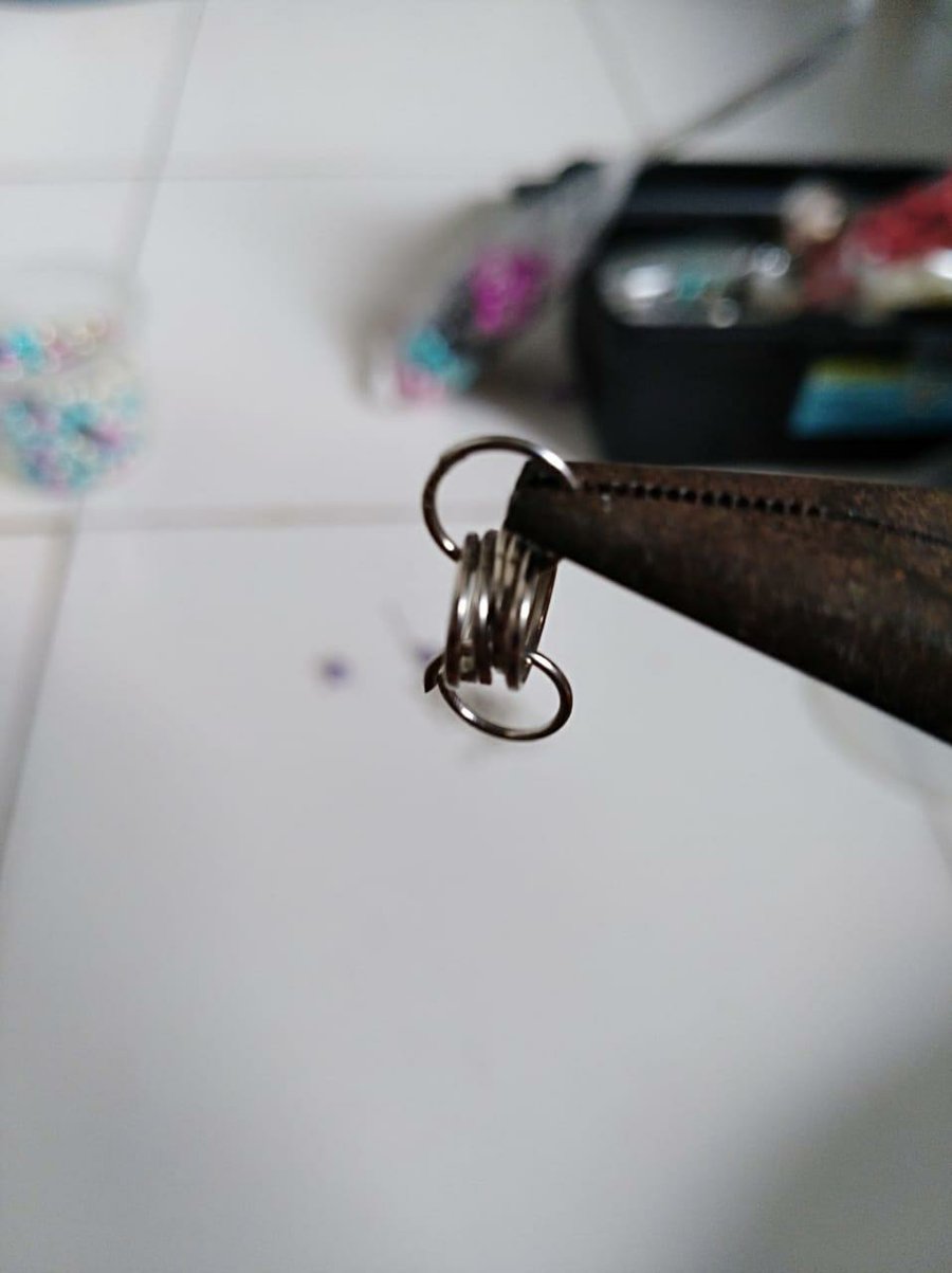 Ahora, unimos lo que hicimos con los conectores circulares y las cinco cuentas.