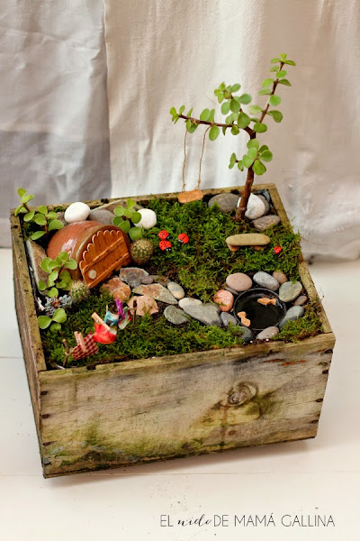Antes de introducir los elementos del jardín, limpiaremos el cristal porque suele estar amarillento. Lo siguiente es meter unos dos centímetros de tierra para plantar y las semillas de la planta que queremos que adorne nuestra creación. Lógicamente, debe ser una plantita pequeña como el trebol o cactus de semilla, debido al poco espacio que dispondrá para crecer.