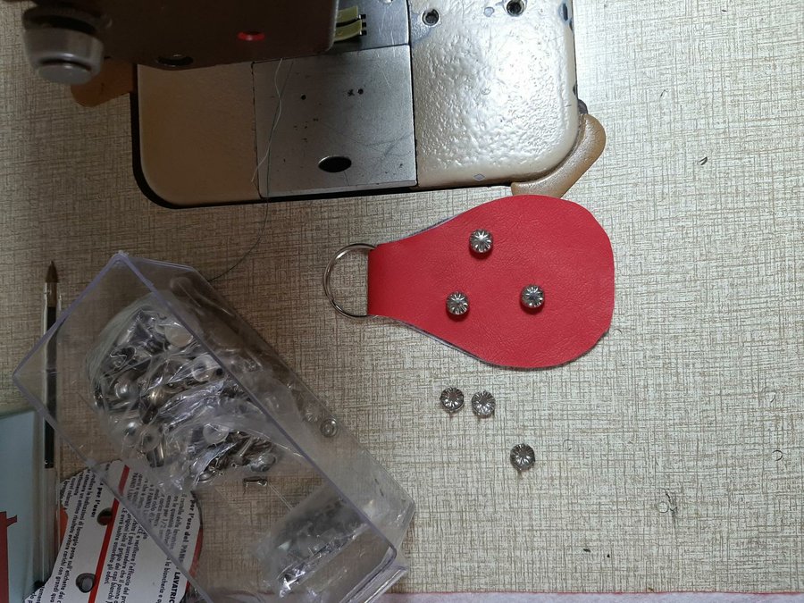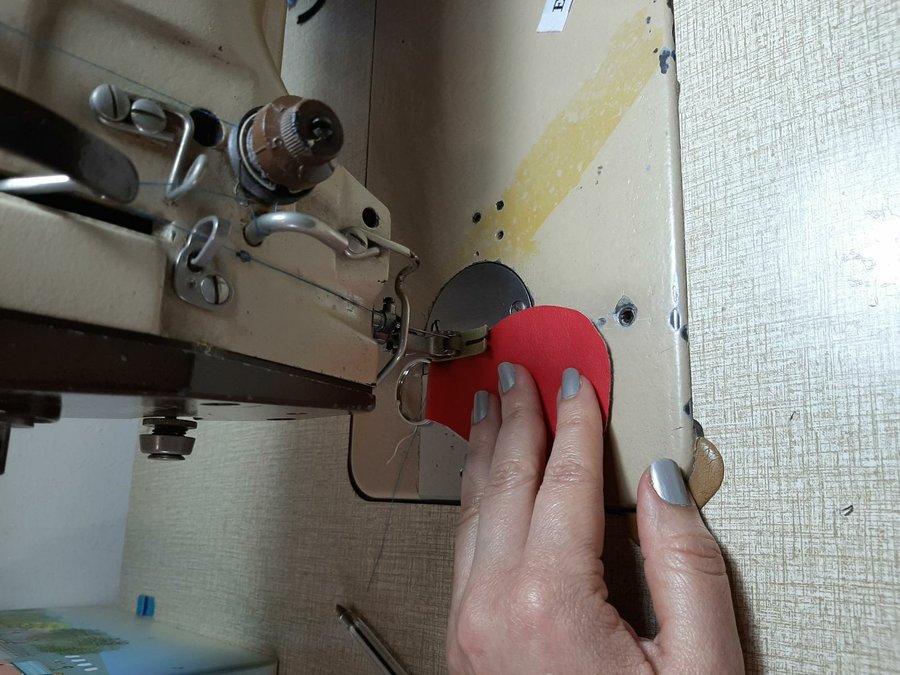 3. Una vez que hayas hecho todo los pasos anteriores encolas las partes de material del llavero y pasas a la maquina de coser para reforzarlo.