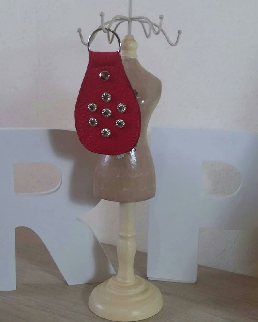 1. Primero debes buscar el material con que lo quieres hacer, yo te recomiendo usar un material muy resistente porque es un accesorio que se usa mucho y esta expuesto a todo y lo màs importante es que llevara algo de peso por las llaves, por lo que debe ser fuerte y vigoroso. puedes usar tela de tapiceria o loneta, o si no bipiel que es el material que he utilizadopara este tutorial. no te preocupes con un pequeño retazo lo puedes hacer, ya que es algo talmente pequeño que no necesitaras de mucho. Tambien necesitaras, una anillo para las llaves, lo puedes comprar en una merceria o simplemente puedes reciclar uno que no uses mas y que este en buenas condiciones, estos generalmente se pueden reciclar porque son nickelados o de acero inoxidable y no se deterioran asi como asi.