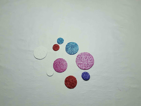 Se elige los colores de la goma Eva. Se hacen círculos con las tapas de diferentes tamaños y se recortan.