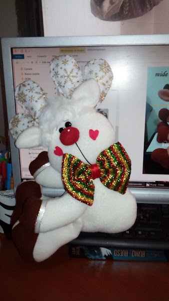 Las orejas también los coso a la cabeza, luego pego los cachos y le pongo peluche o lana. (video).