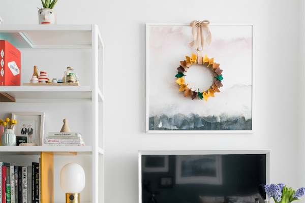 Voila! Tu corona de hojas de otoño está lista para colgarla en casa.