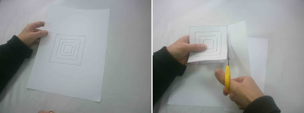 Introduce la cartulina dentro de la plantilla y recorta por las lineas negras donde te indican.