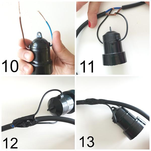 11. Enroscamos un cable del portalámpara en el cable azul y el otro en el marrón.