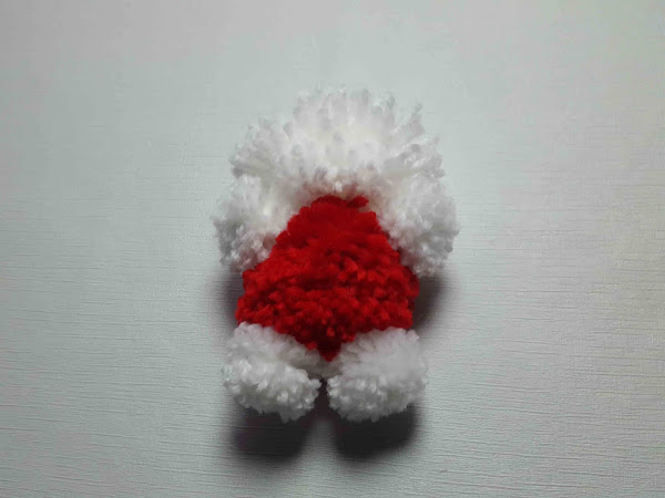 Se hace otro pompón para el cuerpo usando tres dedos y se le da forma redonda. Se unen las dos partes.