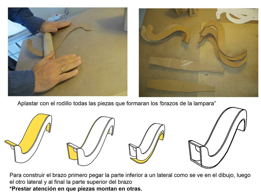 Los materiales para hacer esta lampara son: Cartón de embalajes de un canal, cutter, cola, silicona caliente, papel adhesivo kraft....y poca cosa más. Además de cable eléctrico