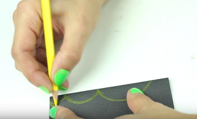 Recorta un rectángulo de cartulina de bastante longitud. Ve doblándolo por la mitad, siempre en el mismo sentido, hasta que quede un espacio reducido.
