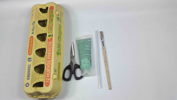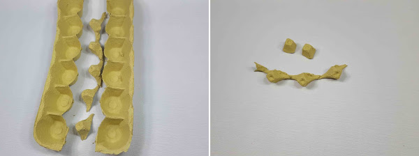 Recortamos la huevera en tres partes y nos quedamos con dos cubitos del medio de la huevera.