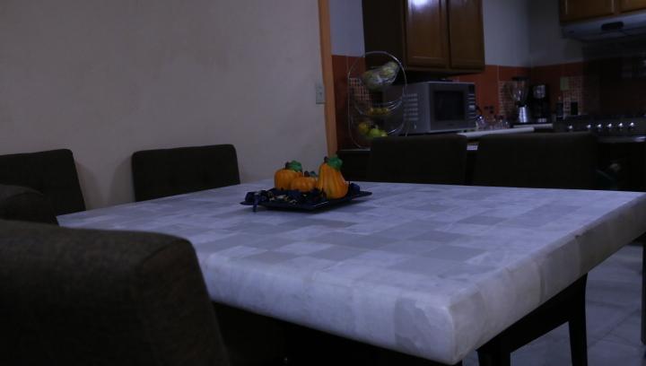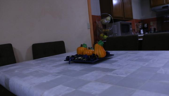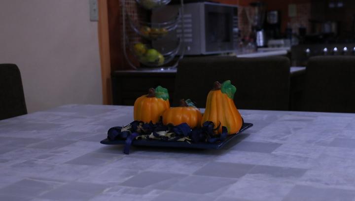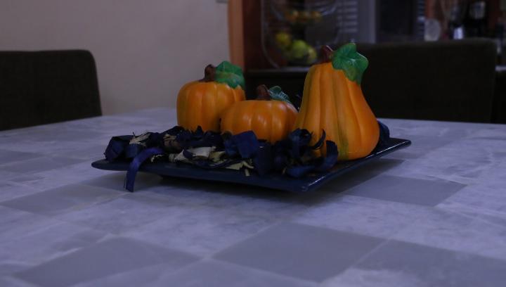 yo adorne el palto en donde puse el centro de mesa con naturaleza muerta y así es como se ve