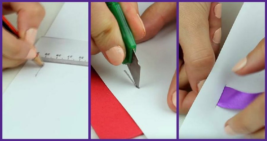 Primero dobla la cartulina en tres como si fuera una ventana. Después mide la parte central y corta un folio del mismo tamaño.