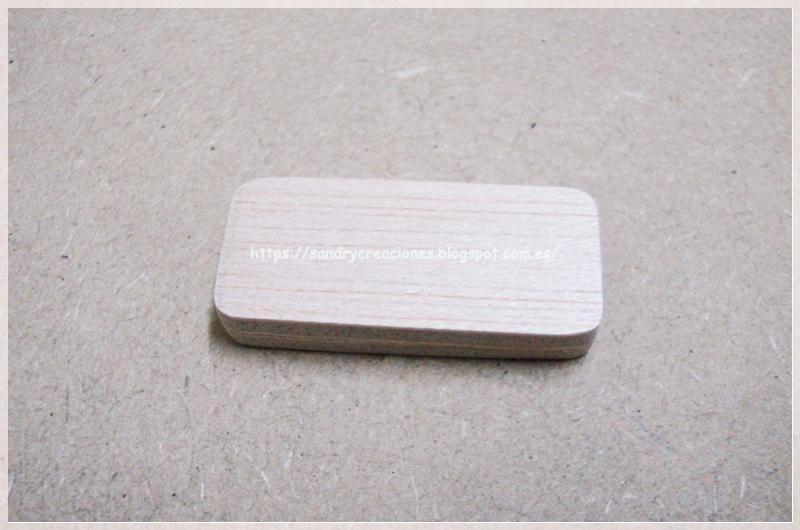 También en la parte trasera tendremos en cuenta el lugar por donde vamos a colgar el reloj. Para evitar el problema de grosor de la lámina de madera, que solucionamos para la zona del mecanismo, realizamos dos trozos de lámina de madera de 4,5 cm x 2 cm, los pegamos entre si y pulimos bien la pieza resultante con papel de lija de grano medio y grano fino.
