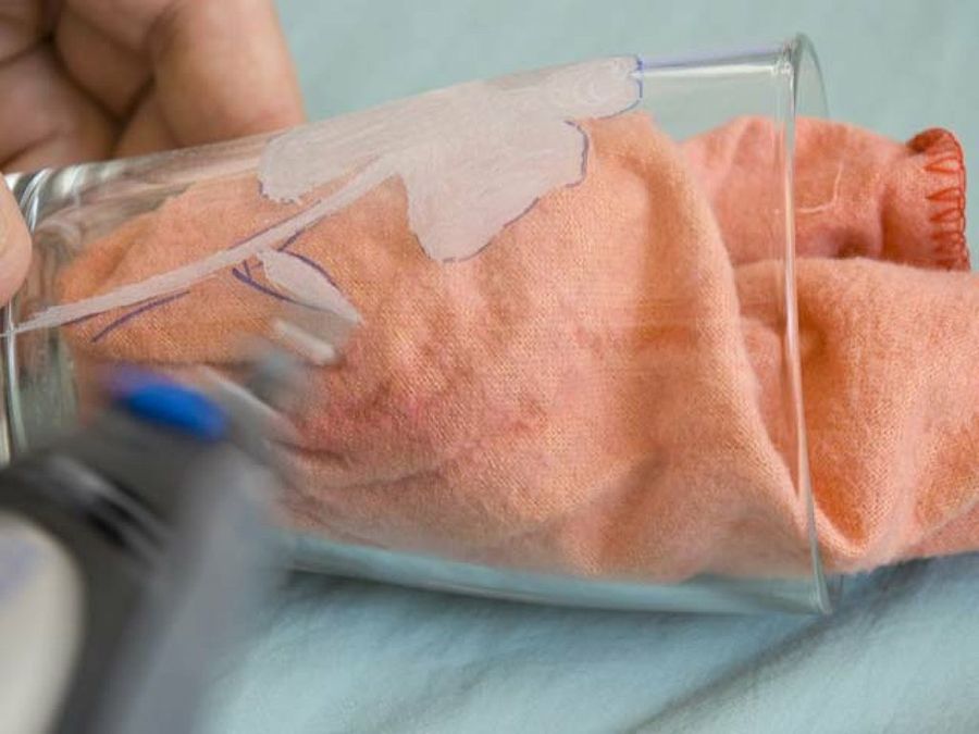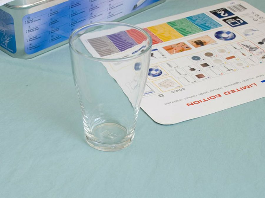 Antes de empezar ponemos en el vaso un paño coloreado, así veremos bien los trazos del esmeril.