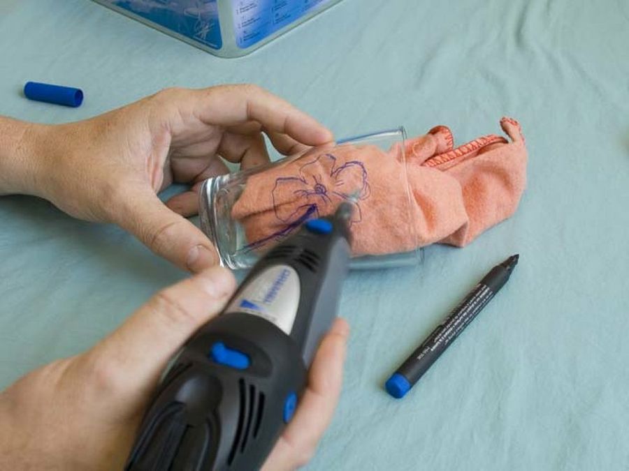 Uno de los más sorprendentes y llamativos es el grabado en cristal. En manos de un experto, la broca de esmerilar dibuja en el vidrio con tanta soltura como el lápiz en el papel. También nosotros podemos coger frascos que habitualmente desechamos, como los botes de mermelada, y decorarlos con dibujos, sencillos sin duda, pero con el encanto del trabajo manual.