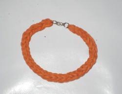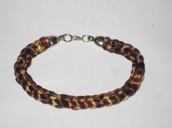 Después de usar la lana he decidido probar con otros materiales y he tejido estas dos pulseras: una con cordón de seda y la otra con un cordón de cuero