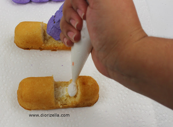 Los ingredientes que vas a necesitar son: bizcochitos rellenos de crema como los twinkies, galletas oreo mini, conejos de marshmallow Peeps, pretzels y azucarado de manteca.