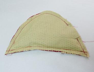 Cortamos las esquinas para quitarles volumen y damos la vuelta a esta especie de "empanadilla". Lo vas a ver como en la foto, después lo planchamos para aplanar.