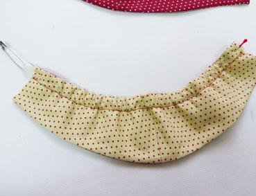 Tensar la goma, bastante, aproximadamente tiene que haber unos 25cm dentro del túnel y sujetarla en los extremos antes de cortarla, ¿Como? Lo mejor es un pespunte a máquina. Debe ser fuerte para que la goma no se salga.