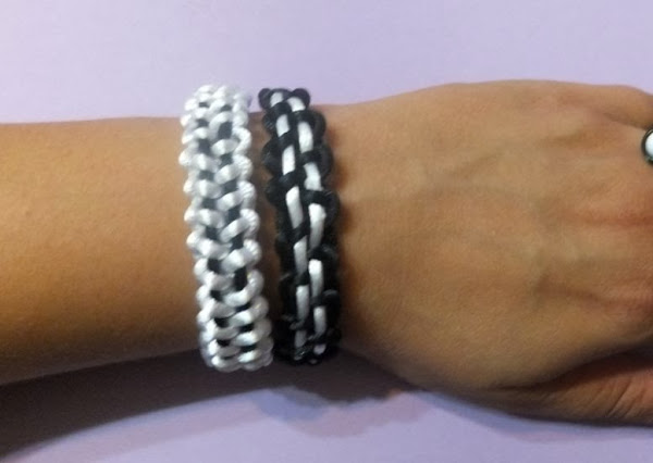 Bueno...después de unos días de parón por estar malilla...me he pasado estos días trasteándo con todo lo que he pillado jjejejjejeee. Las dos pulseras son iguales, la unica diferencia es que la negra tiene los puntos mas separados y la blanca mas pegados. He hecho varias cosas, pero hoy os dejo una de ellas...poco a poco. Así que, ahí va un nuevo modelo de pulseras, sencillas. Espero que os gu ...