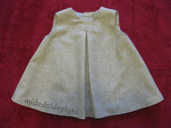 De pequeña siempre iba de azul, y mi hermana de rojo. Es algo que hasta me gustaba. Por eso pienso que los hermanos, aunque sean de diferente sexo, deben ir vestidos en armonía. Y creé mis propios diseños para mis sobrinos. Os enseño algunos... Para el vestido de la niña utilicé un patrón entero y de mucho vuelo, con un pliegue en el escote delantero, adornado por unas florecillas bordadas en gris ...