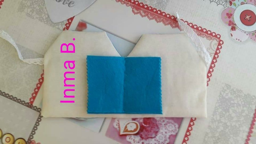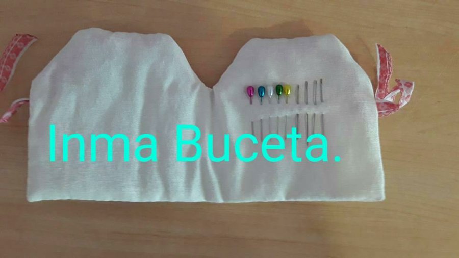 Le hice unos bolsillos interiores para poner las tijeras,el metro,etc...