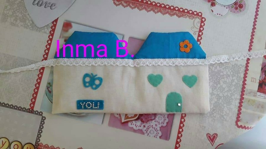 Hacía muchos años que tenia ganas de hacerme un costurero de tela en forma de casa,hice los patrones en papel y manos a la obra.