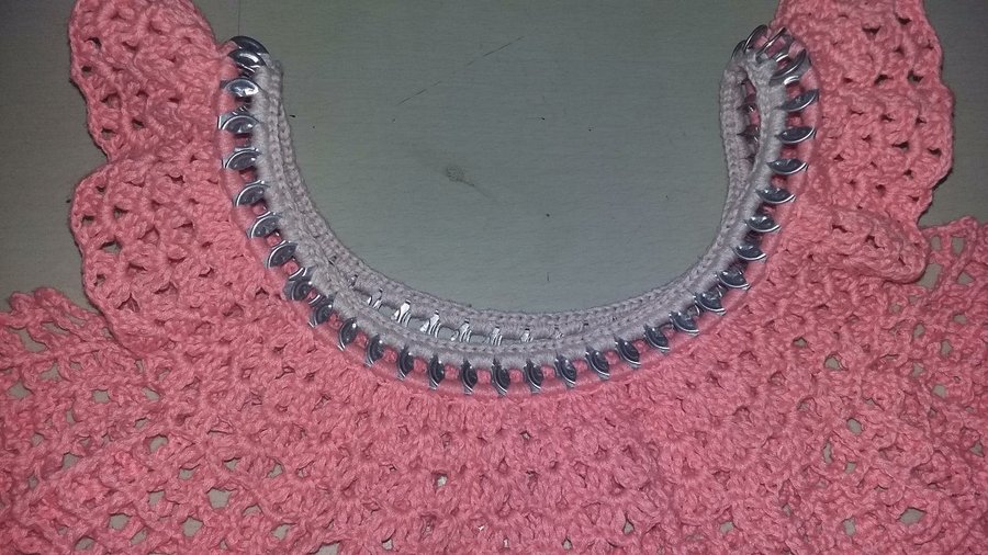 El detalle en el cuello es algo maravilloso, se ve genial y le da un toque de brillo a la prenda, si no te gusta el color plateado que es el color natural de muchas anillas, las puedes pintar del color que más te guste y que este en combinación con los colores que utilices para tu crop top.