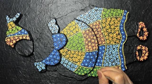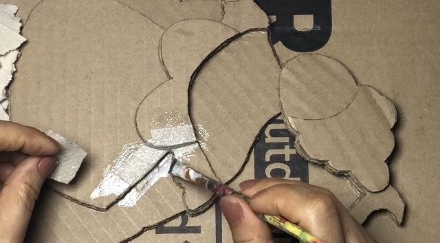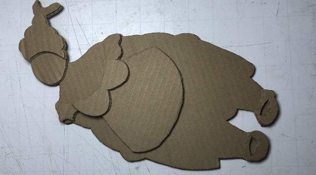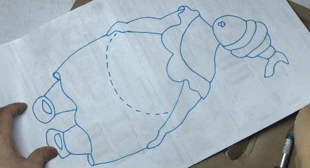 Transferir la silueta de la Big Mamma al cartón por papel carbón y cortar con bisturí