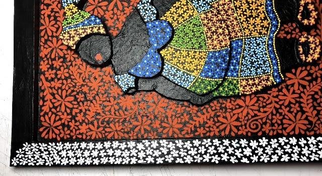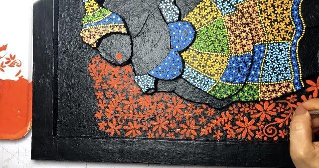 Corto de cartón un cuadrado base con su marco, monto la Big Mamma y hago cartapesta con papel de cocina y cola blanca diluida....cuando estuvo seco pinto dos capas generosas de acrílico negro