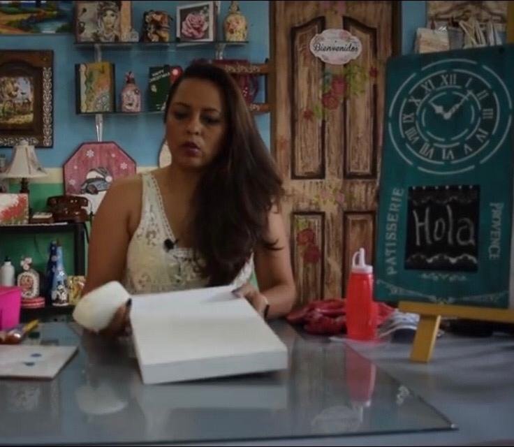 Trabajaremos sobre un bastidor de madera que mide 25 x 35 cm aproximadamente,vamos a utilizar varios colores, (de su preferencia) pero primero sellaremos nuestra pieza, dándole una capa de color blanco Acrílico, después de dejarla secar muy bien,