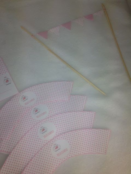 Porta cupcakes y banderines para la torta, dan ese detalle, que cambia por completo la decoración de la mesa.