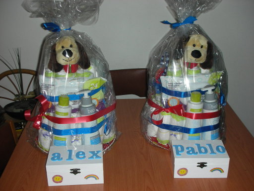 Hoy voy a poner unas "tartas de pañales" que hice hace tiempo, son muy sencillas pues solo queria hacer un detalle, la verdad es que han gustado, es una idea divertida.Os gustan?????Estas las hice para los gemelos de mi primo y tambien les hice unas cajitas con unas imágenes infantiles y sus nombres.Y esta otra para unos amigos, son sencillas, pero para un detallito no esta mal.Muchos besitos a to ...
