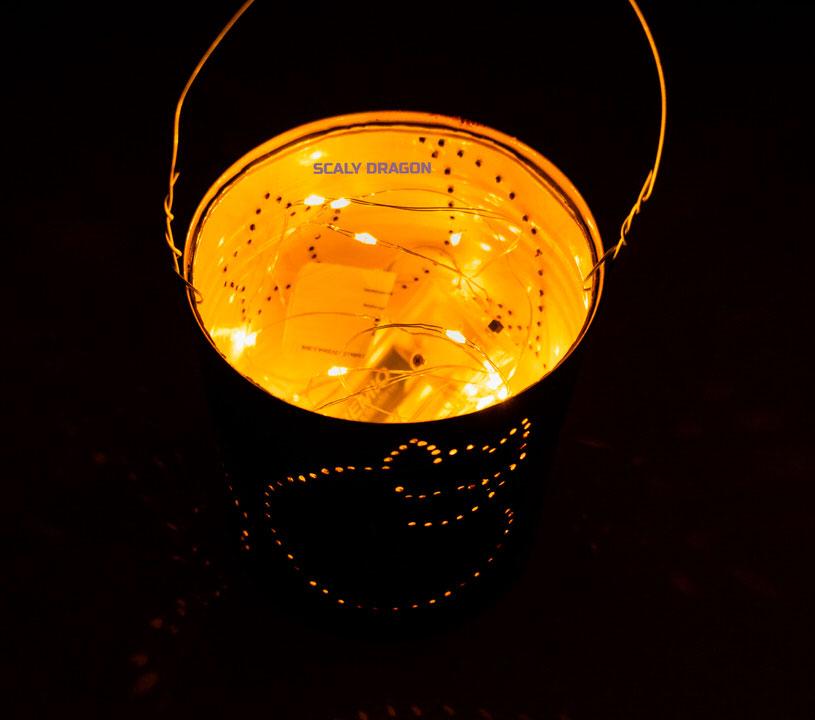 Luminaria o farolillo con una lata, paso a paso en el minuto 7:41