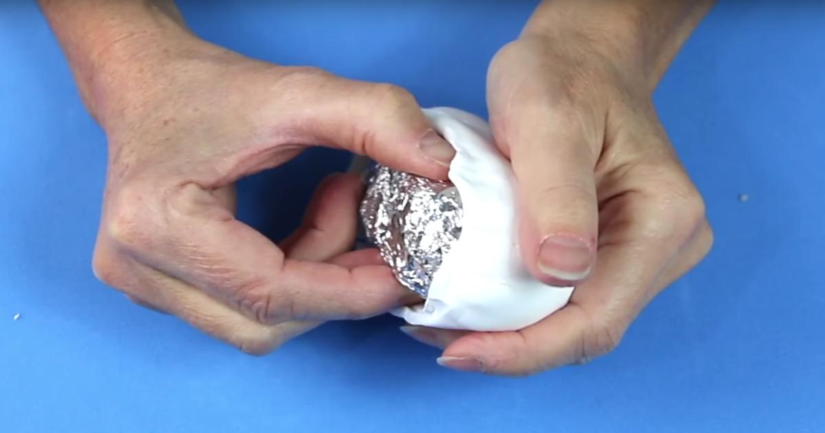 Para hacer esta técnica, vamos a necesitar papel de aluminio. Lo primero que hacemos es enrollarlo en forma de bolitas y unir tres de ellas. De esta manera consigo un molde de nube Kawaii muy chulo: