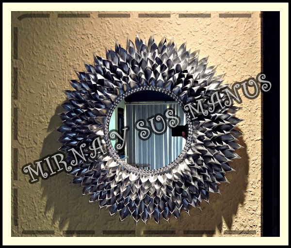Hola buenos dias, como estan? espero que muy bien. Bueno yo pensando en como reutilizar las botellas de plastico se me ocurrio hacer o mejor dicho decorar un espejo que tambien estaba reciclando, ya que era de un tocador , que se me desbarato y se agrieto el espejo. Como me quedocasi entero , los lleve a recortar, y me cobraron muy poquito por hacermelos redondos . Asi que para este espejo lo unic ...