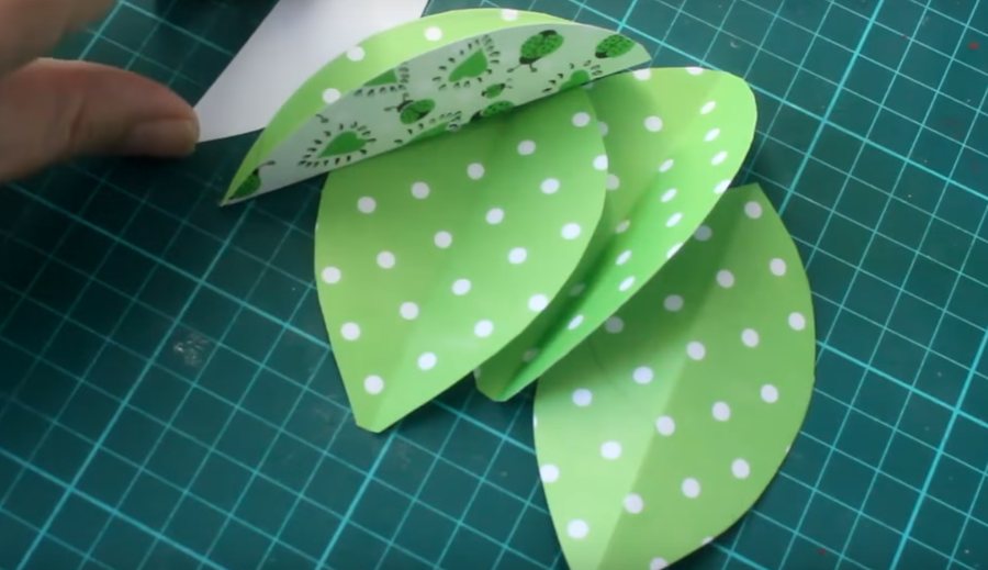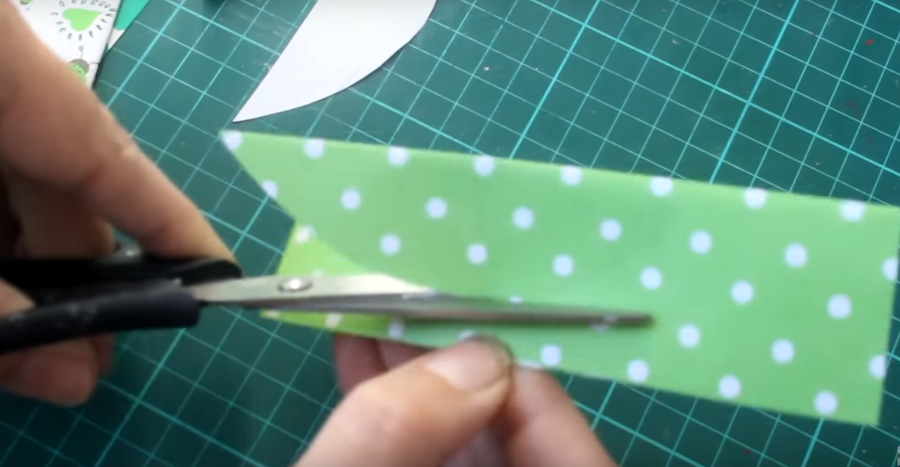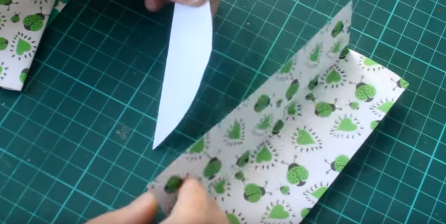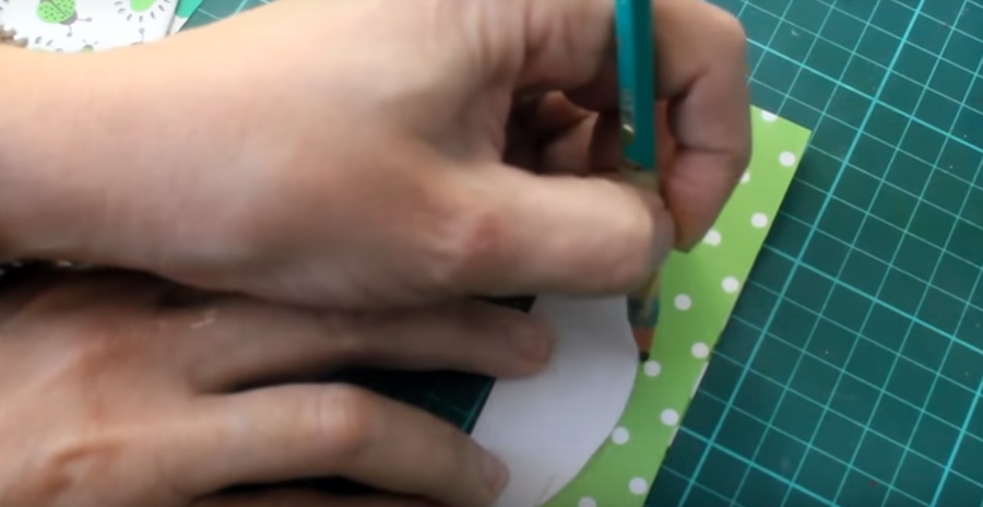 Recortar una figura en papel (una especie de medio círculo) como se muestra en la imagen y un rectángulo de una de las cartulinas decoradas...