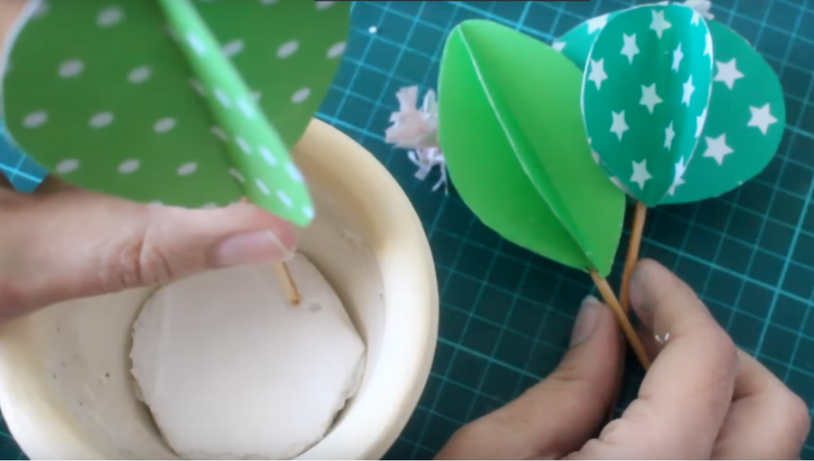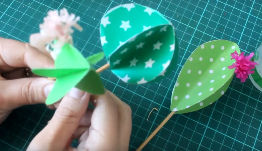 Para comenzar a armar el cactus, vamos a pegar por las partes que no se verán...