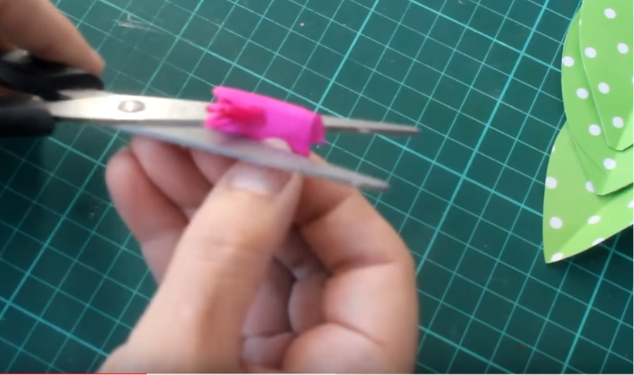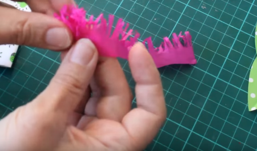 Para hacer la flor del cactus, vamos a recortar una tira de papel de china de aproximadamente 1,5 cm y doblarla sobre sí....