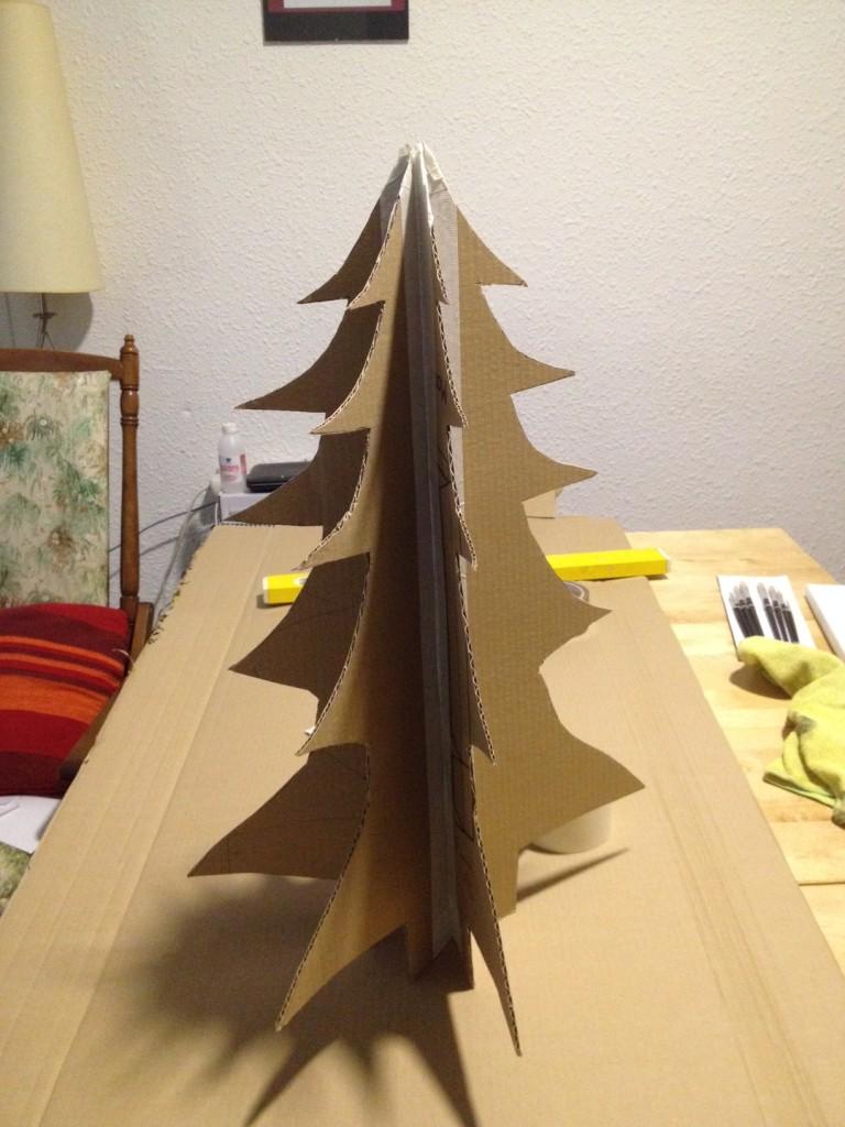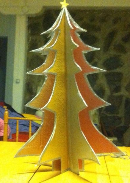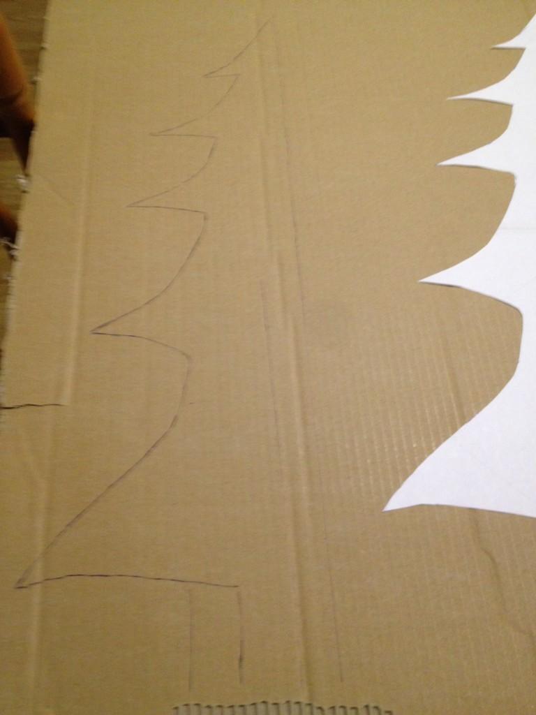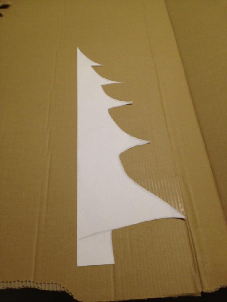 1) Hacemos un patrón de medio árbol de Navidad en un folio.