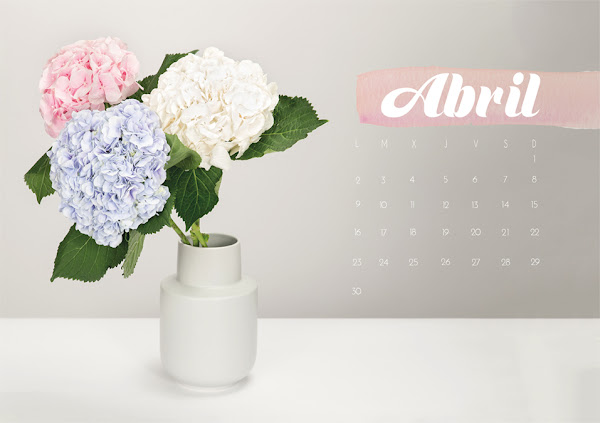 Último jueves del mes de Marzo y os traigo el calendario para el próximo mes, Abril. Tengo que decir que el mes se me ha pasado volando, entre las Fallas, Pascua y fiestas de Moros y Cristianos en mi pueblo se me han pasado estos días super rápido.Como siempre lo tenéis en dos versiones, una imprimible y otra para ponerlo de fondo de escritorio, vosotras elegís cuál queréis tener.Como podéis ver a ...