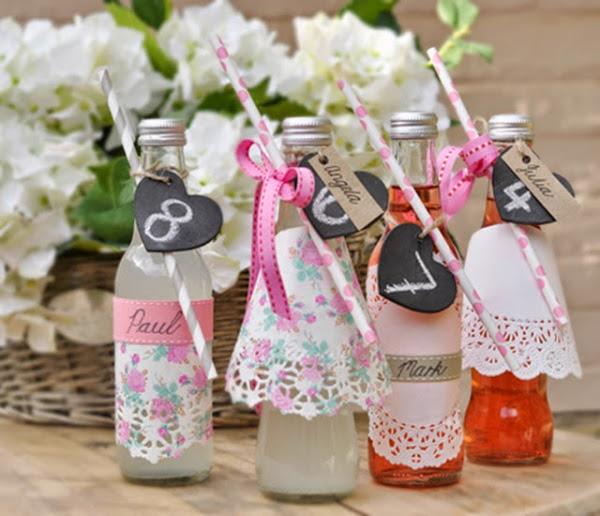 También decoramos esa botellitas que tanto se están usando en la decoración de las mesas.