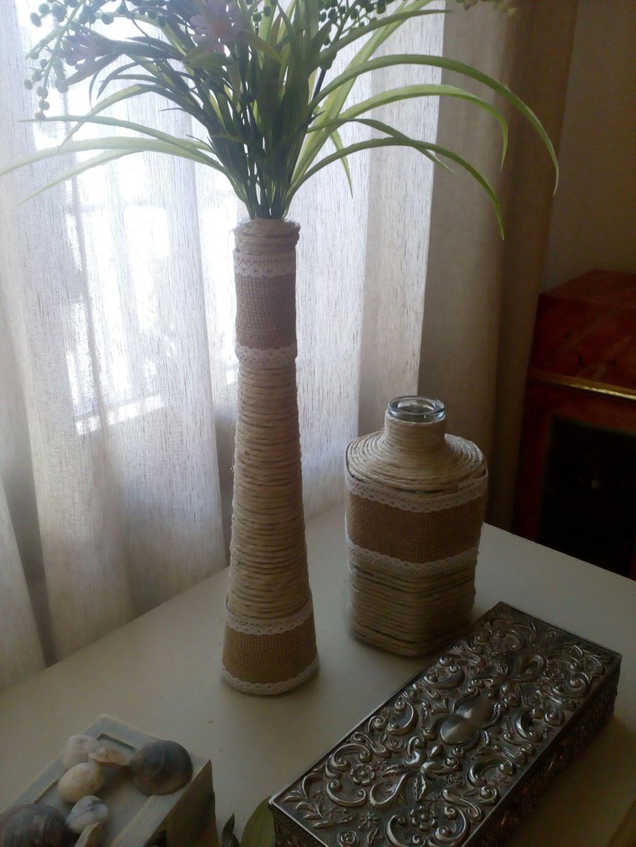 La realización es muy sencilla, solo hay que ir bordeando con la cuerda e ir pegandola alrededor de todo el tarro, una vez ya pegado le añadiremos diversos elementos decorativos, ahí es donde nuestra fantasía e imaginación cobra todo el protagonismo, podemos añadirle, cintas de colores, flores de tela, encajes etc.