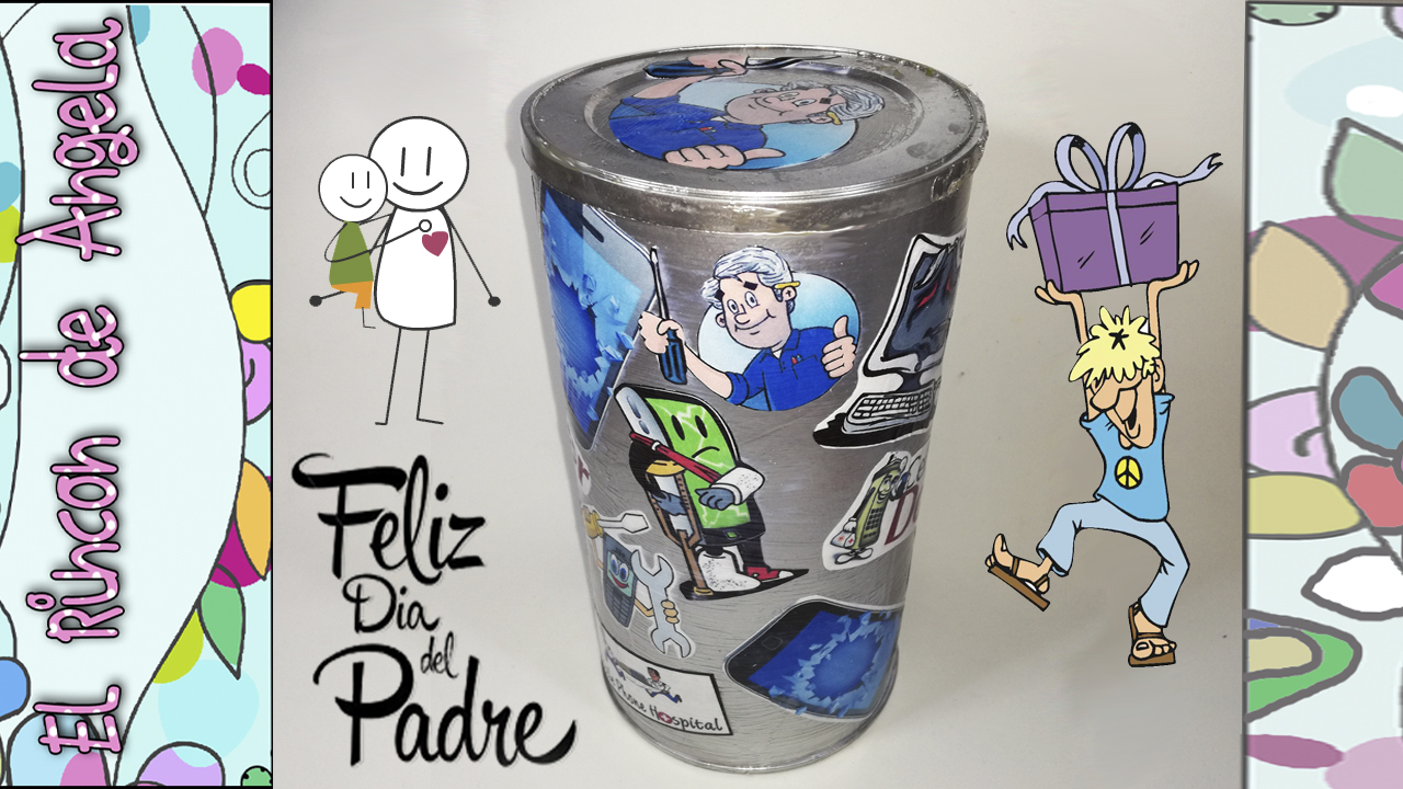 No sabes que regalar a tu papa, en su día? Pues piensa en las cosas que le gustan, fútbol, motos, coches, herramientas.... y busca fotos, recortes de revistas o dibujos sobre eso. Ya lo tienes? pues con eso y poco mas, tendrás un regalo muy original y divertido. En este video, te enseño como decorar un bote para guardar herramientas pequeñas.