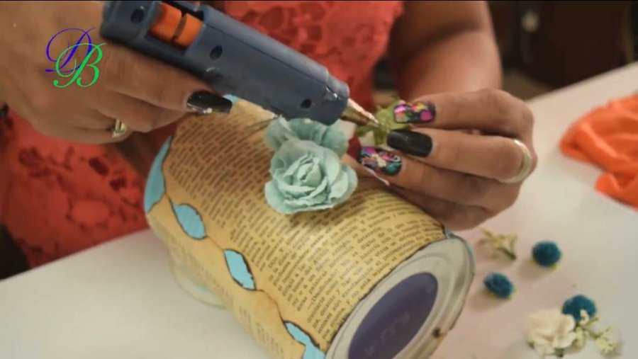 Teniendo ya pintado nuestro tarro, alistaremos las hojas, usando de un libro viejito o de diario
