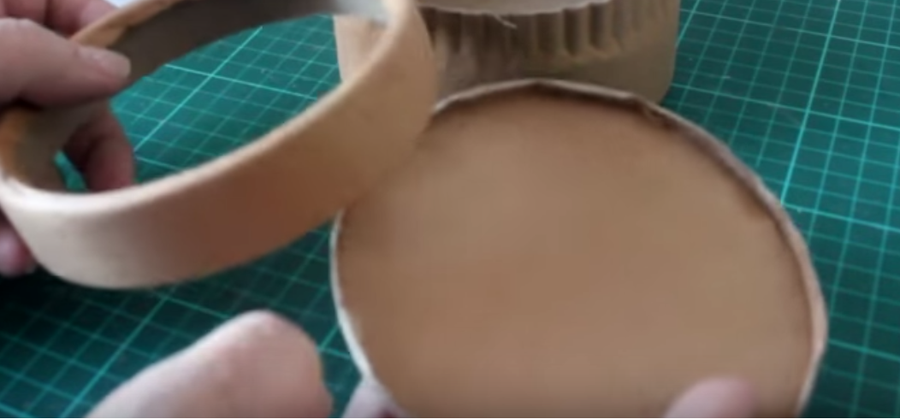 A ese círculo de cartón que retiramos le tenemos que recortar un poquito el borde para que no choque con la parte de abajo a la hora de cerrar porque lo vamos a utilzar al revés de cómo estaba (la parte que estaba hacia abajo va a quedar hacia arriba)